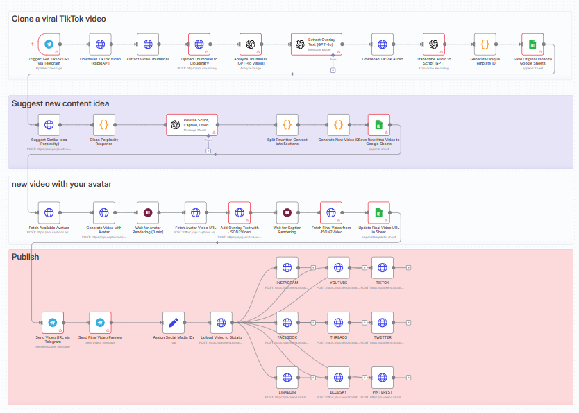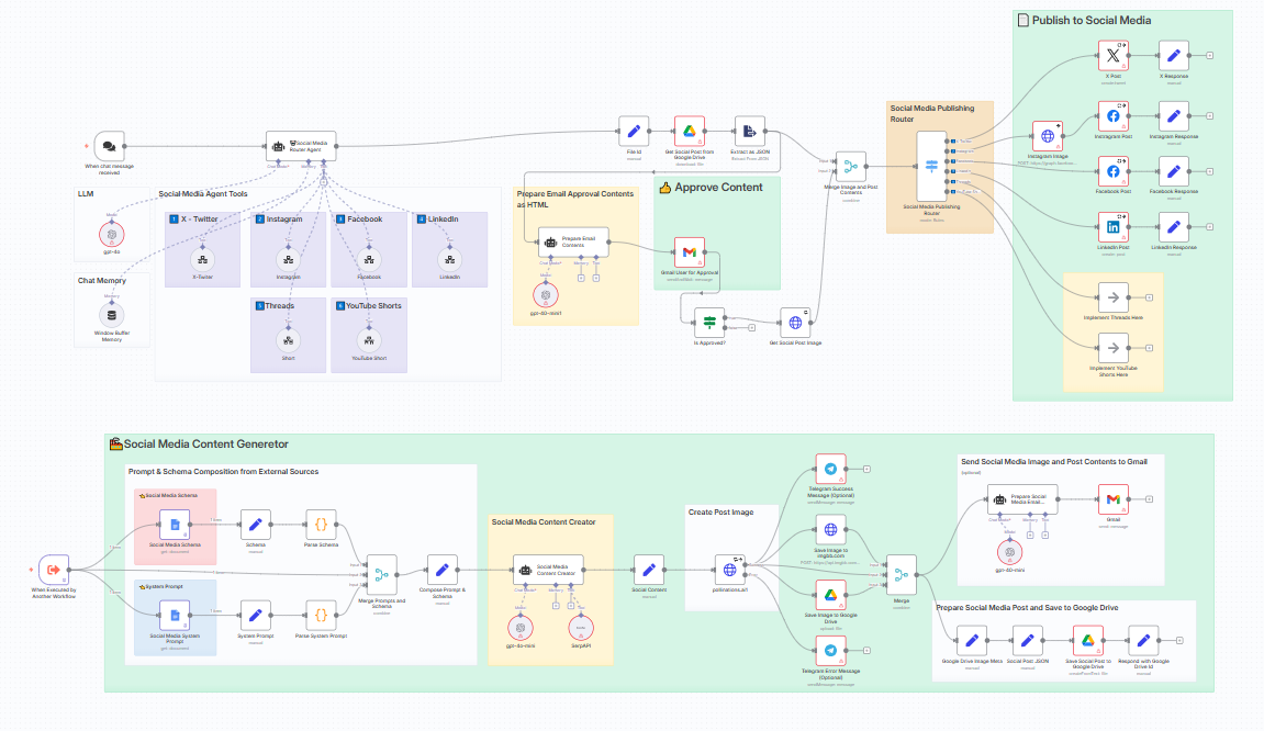 Use Case Automation system that takes one content idea and turns it into posts for Twitter, Instagram, Facebook, LinkedIn, Threads,…